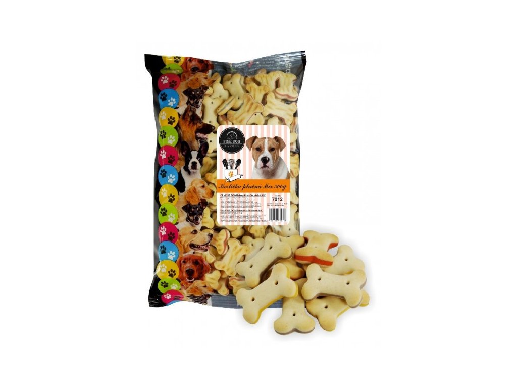 Fine Dog Kostička Plněná (500 g) je pečivový pamlsek ve tvaru kostiček určený pro dospělé psy. Tyto kostičky jsou plněné (s náplní), což zvyšuje jejich chutnost a atraktivitu. Jsou ideální jako odměna nebo křupavé zpestření stravy.