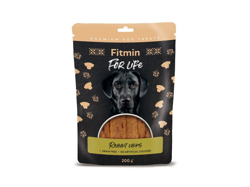 Fitmin For Life Dog Treat Rabbit Chips (200 g) jsou plátky z králičího masa (s vysokým podílem bílkovin a nízkým obsahem tuku), které slouží jako lehce stravitelná masová pochoutka pro psy. Jsou bez obilovin, neobsahují nebezpečné konzervanty ani barviva a jsou zvláště vhodné pro alergiky a citlivé psy. Díky složení je lze snadno dělit na malé kousky, což je ideální pro výcvik a odměňování malých i velkých plemen.